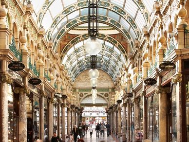 The Victoria Quarter in Leeds is a prestigious shopping arcade and a Grade 2 Listed Building, known for its unique architectural features and high-end retail spaces.